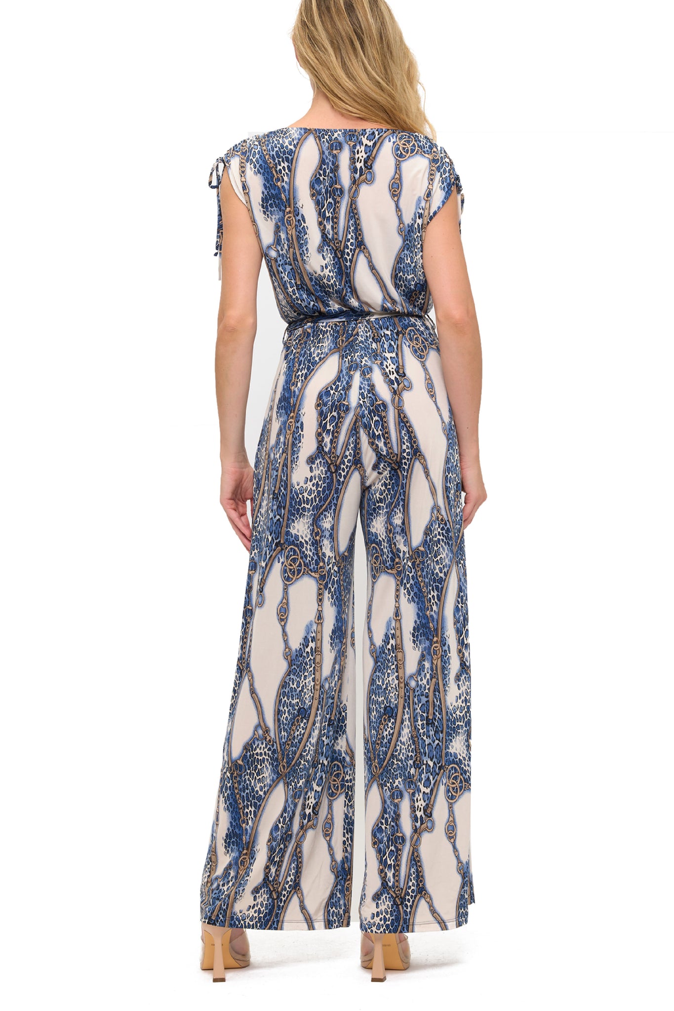 Effortless style meets comfort in this printed wide leg jumpsuit. Featuring a flattering tie waist that cinches at the perfect spot, this one-piece wonder offers a polished silhouette without the fuss of coordinating separates. The flowing wide legs provide ease of movement while maintaining a sophisticated look. Perfect for casual outings, brunches, or dressed-up occasions. A versatile wardrobe essential that transitions seamlessly from day to night.