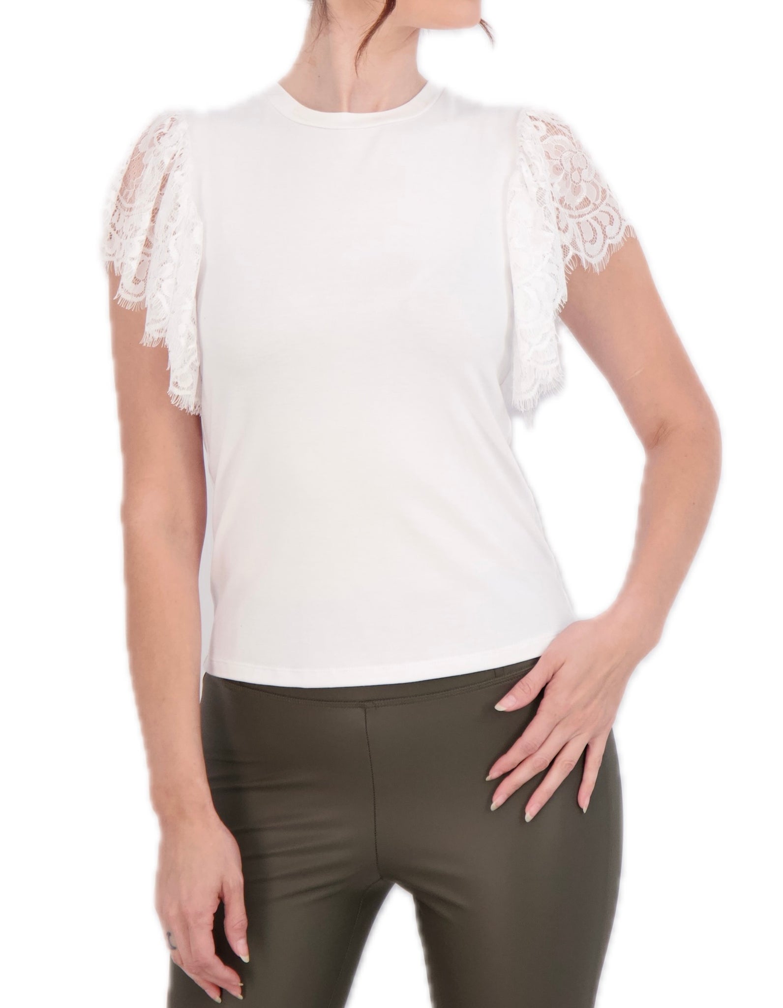 Crew Neck Top with Lace Shoulder Detail