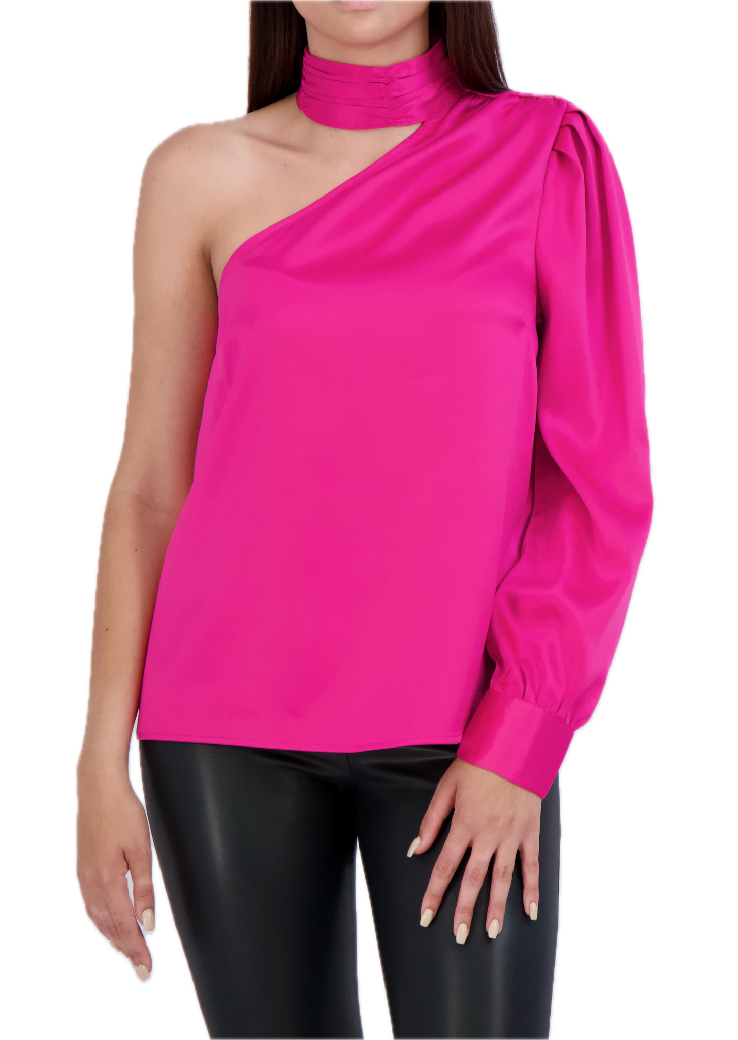 OL621025 - One Shoulder Puff Sleeve Satin Top - Ookie & Lala